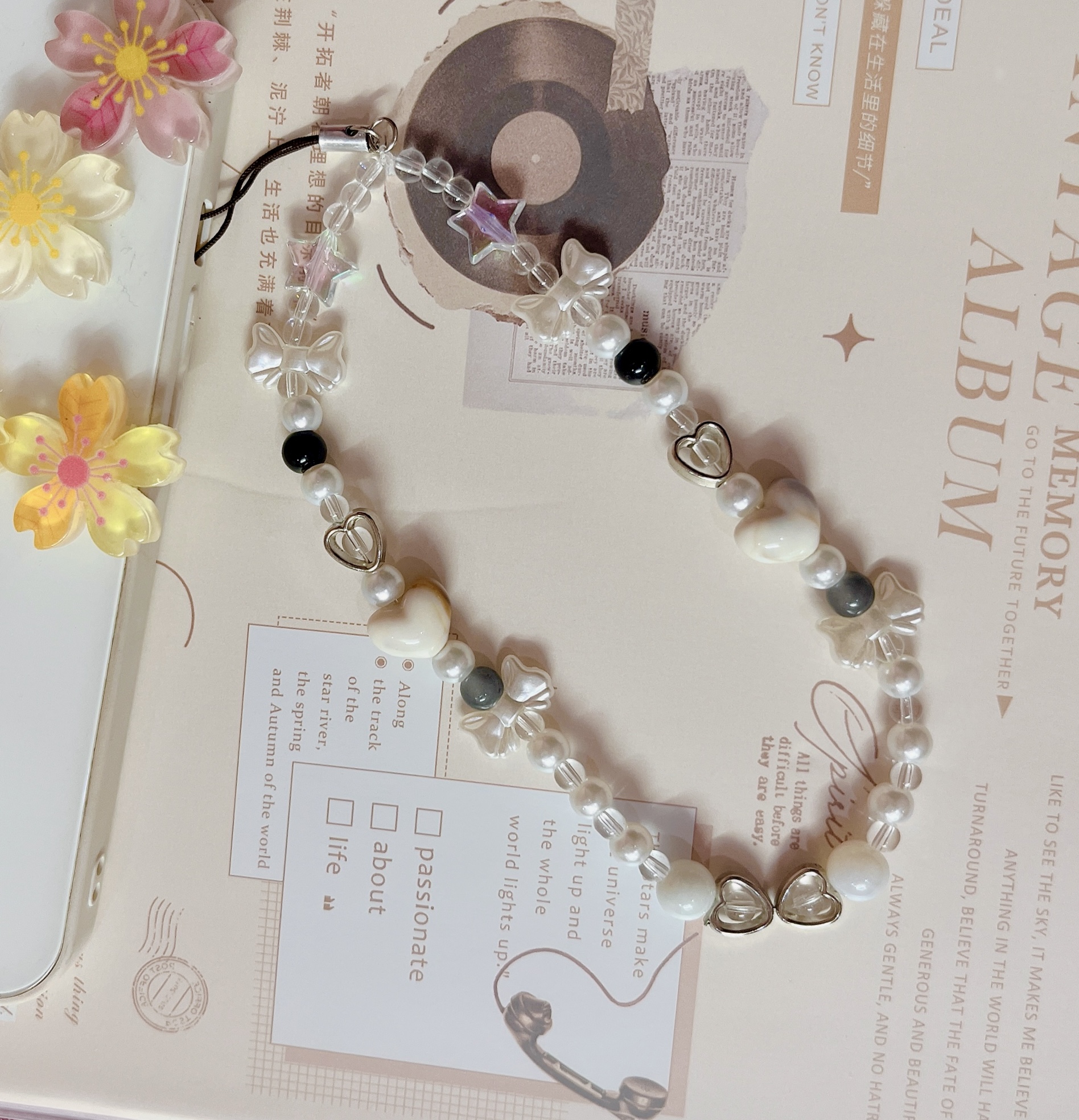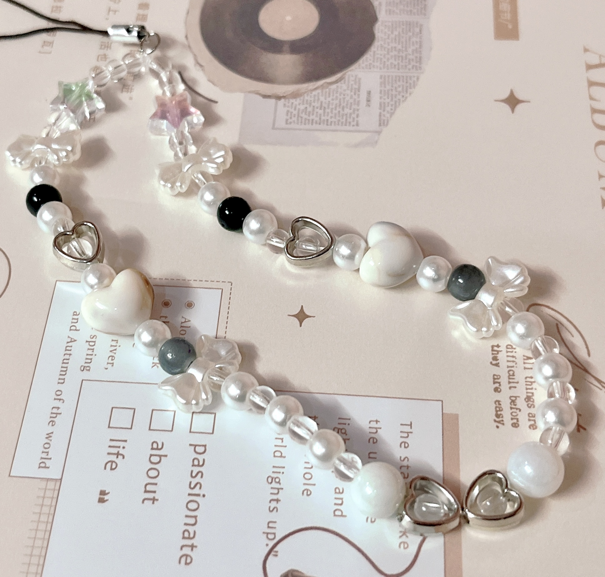 • Includes pearls, bows, hearts, and iridescent beads