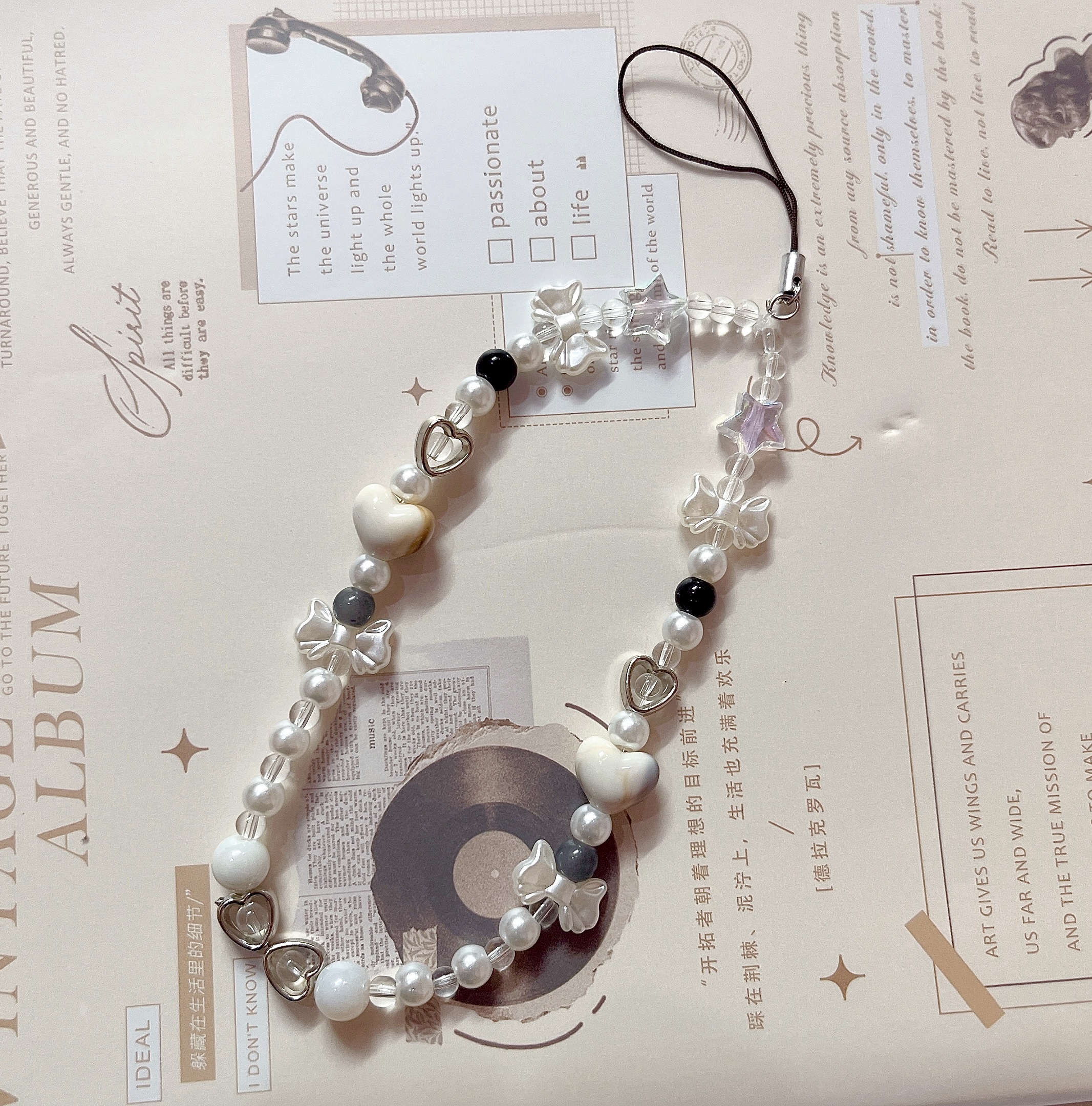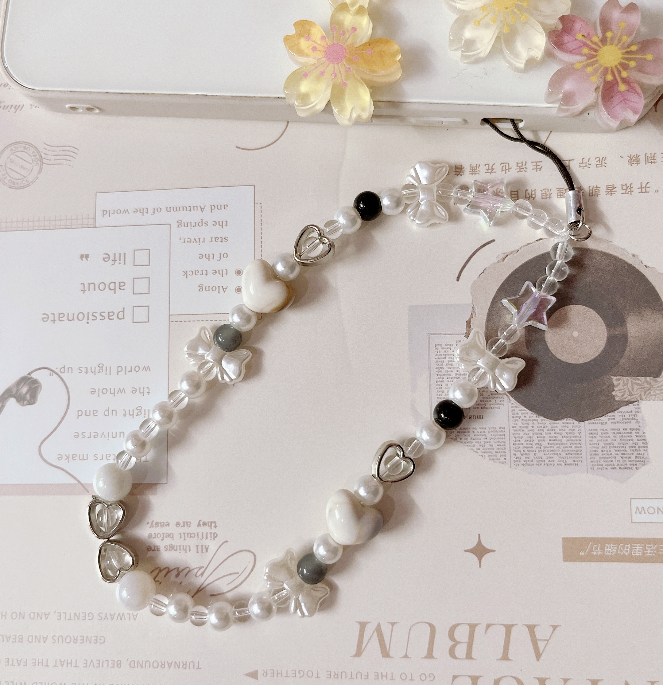 Add a touch of charm and elegance to your everyday essentials with the Pearl & Bow Beaded Phone Charm from ZEBRA PATH. This handmade strap is adorned with an enchanting mix of pearl-like beads, clear crystal spacers, glossy hearts, and translucent bows. Designed to clip effortlessly onto your phone case, this accessory blends soft romantic vibes with modern functionality.