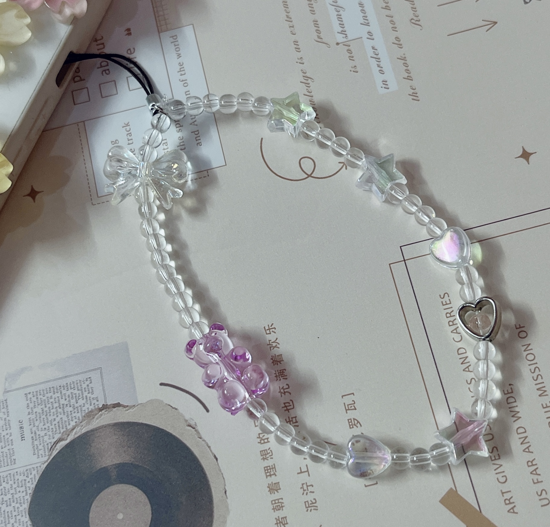 Includes pearls, bows, hearts, and iridescent beads