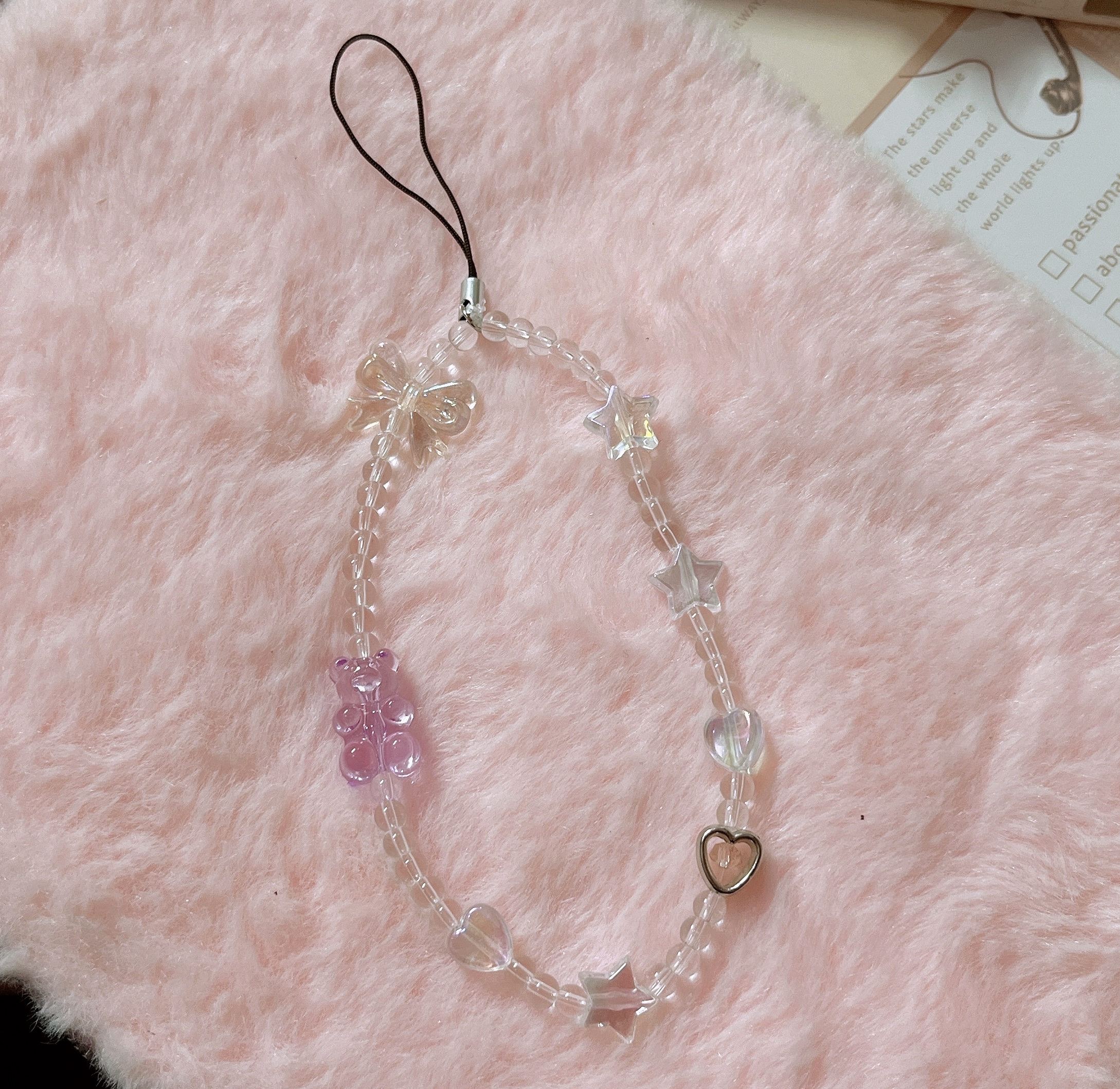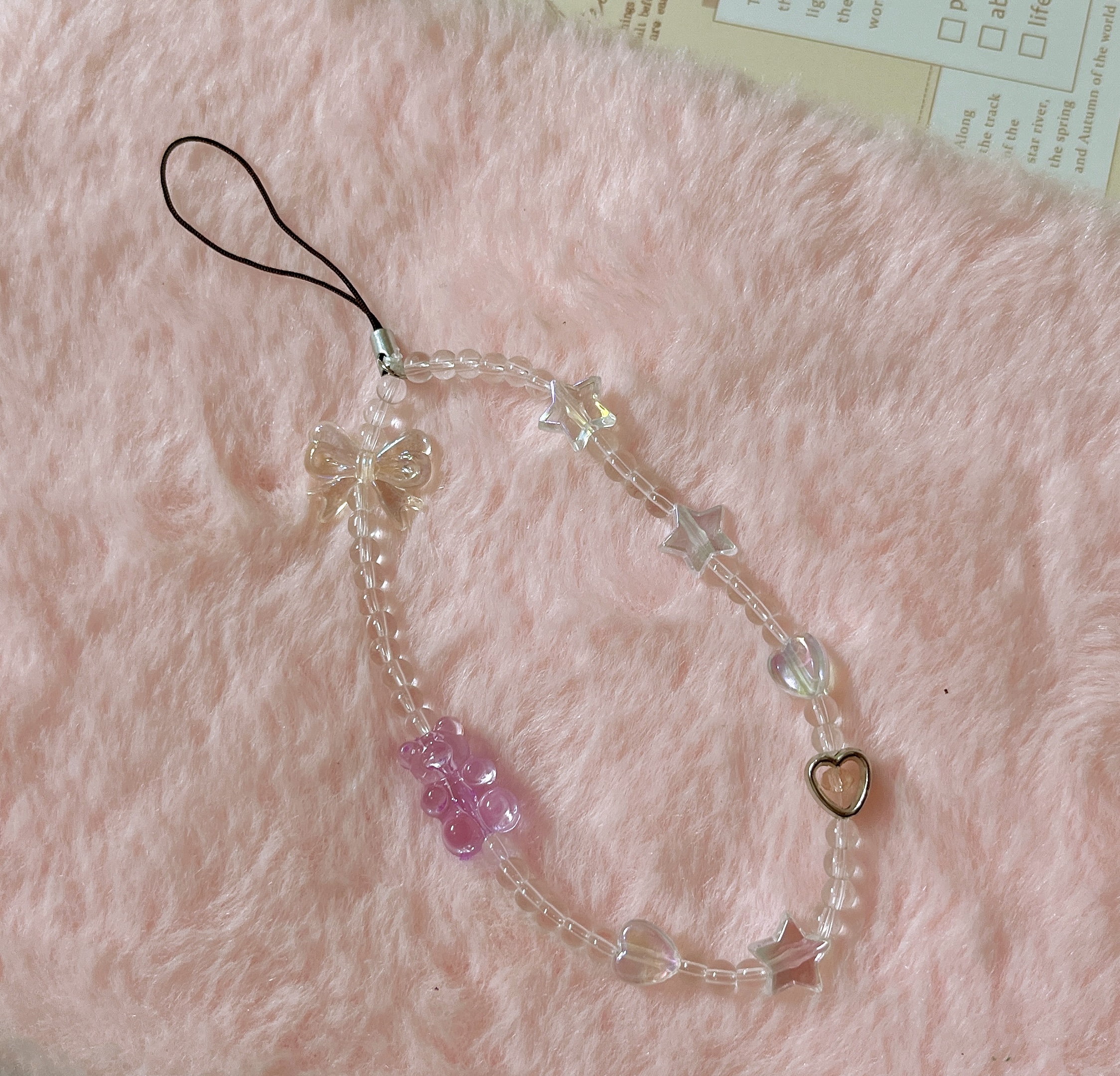 Add a touch of charm and elegance to your everyday essentials with the Pearl & Bow Beaded Phone Charm from ZEBRA PATH. This handmade strap is adorned with an enchanting mix of pearl-like beads, clear crystal spacers, glossy hearts, and translucent bows. Designed to clip effortlessly onto your phone case, this accessory blends soft romantic vibes with modern functionality.