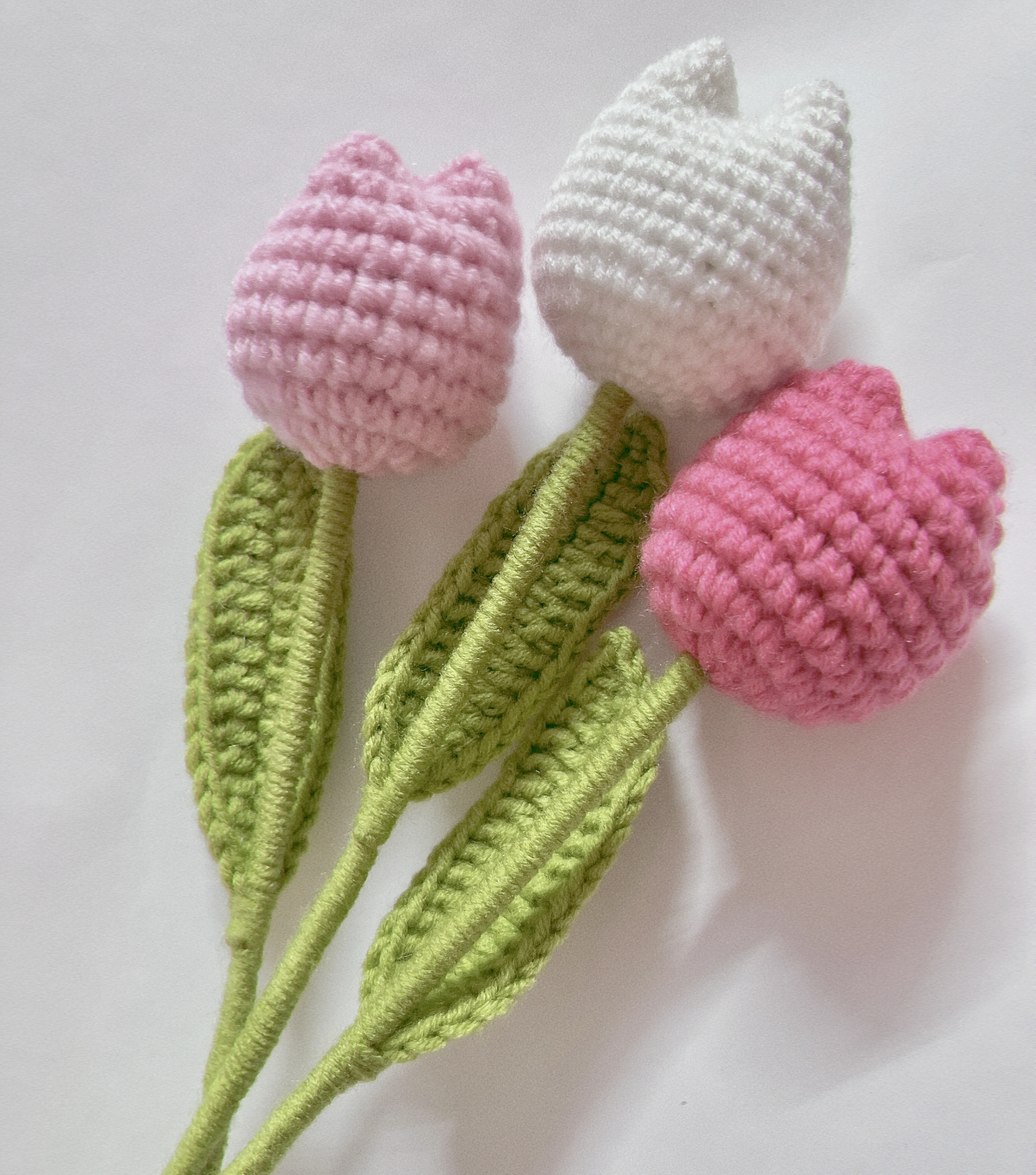 Add a soft, handmade charm to your space with this lovely Crochet Tulip Flower Set by ZEBRA PATH. Each tulip is carefully hand-knitted with love and features plush, pastel-coloured petals in pink, white, and red, paired with sturdy green stems and textured leaves. These yarn tulips are ideal for creating cozy decor moments, styling flat lays, or gifting to someone special who adores handmade art.