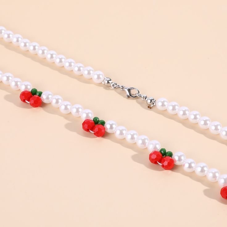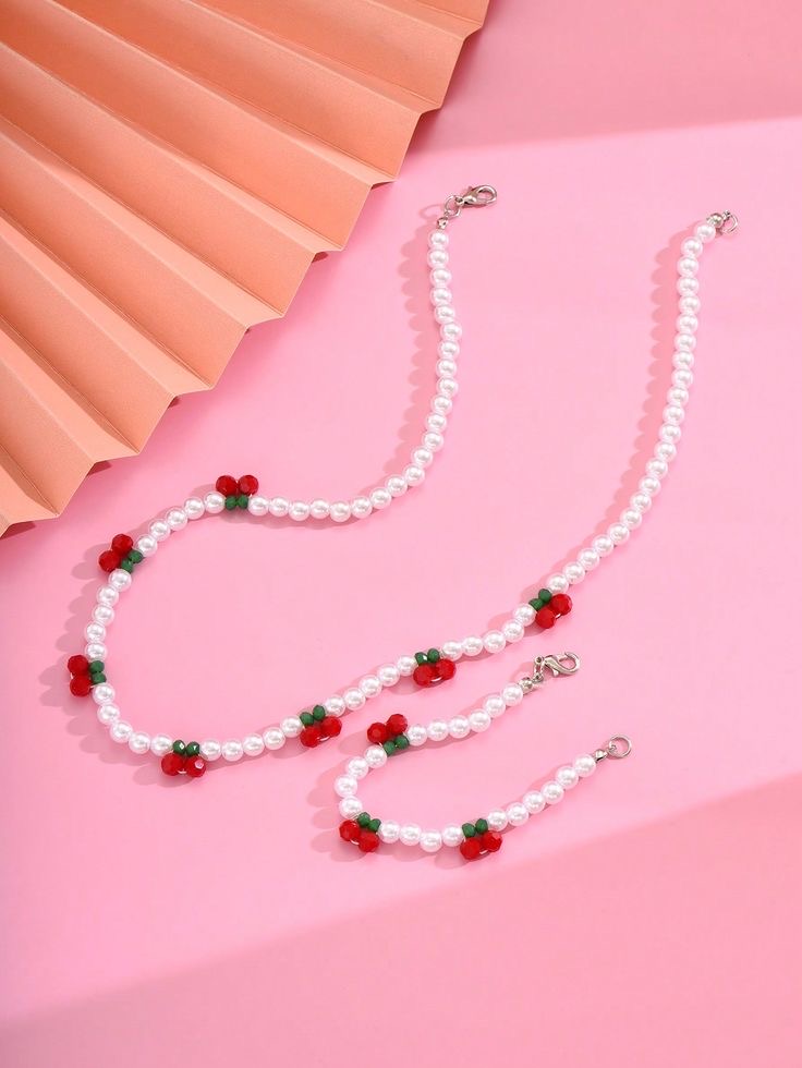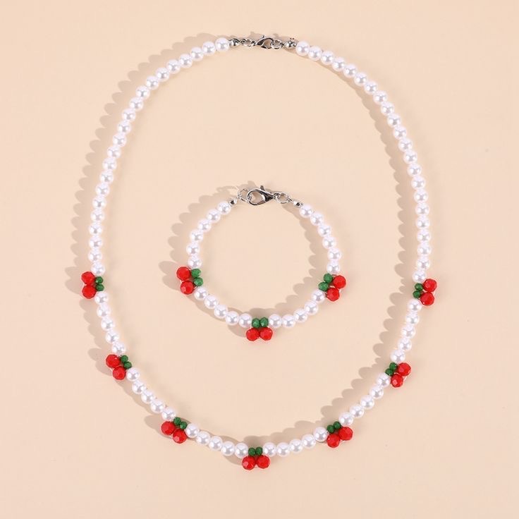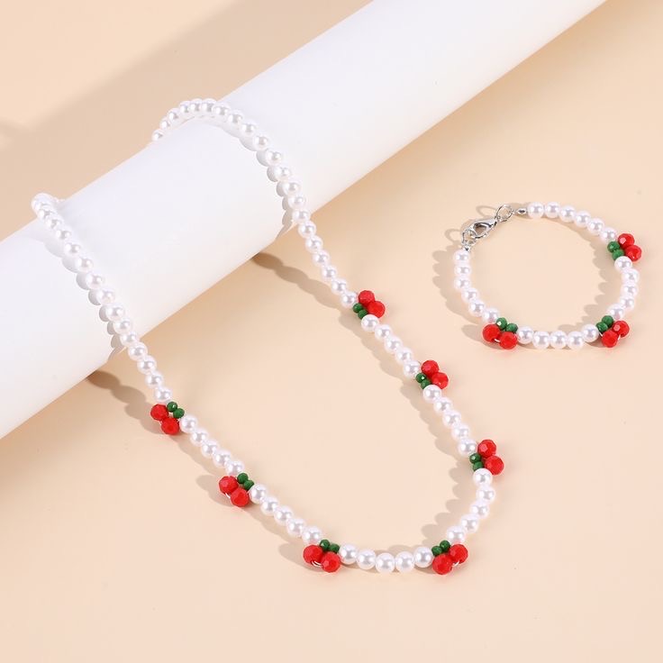 Hot Selling Pearl Acrylic Cherry Beaded Necklace Cute Red Cherry Children’s Bracelet Necklace Set