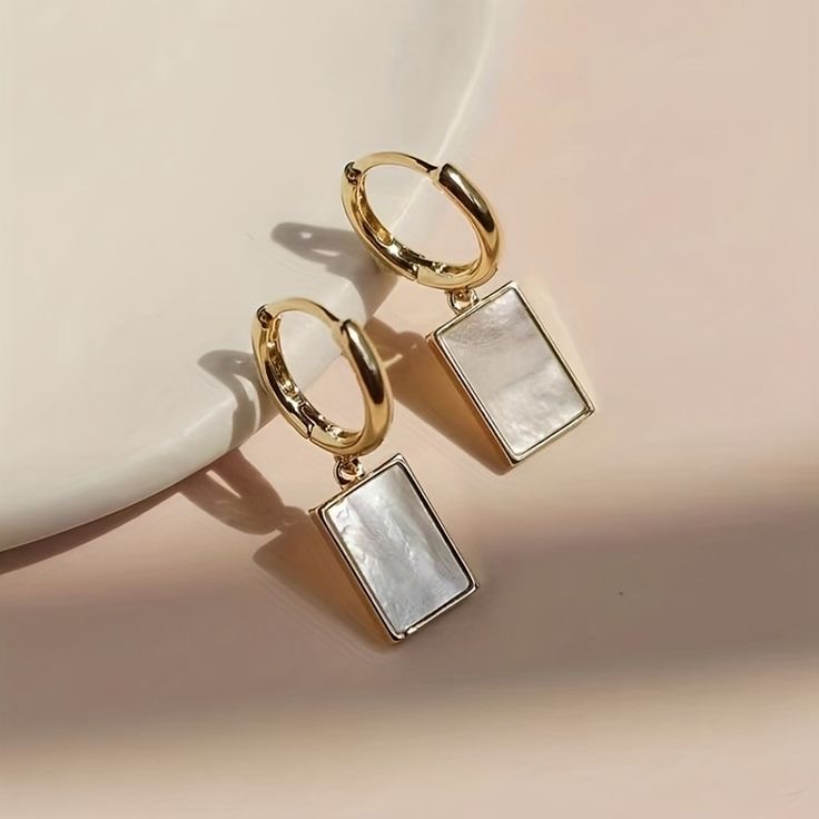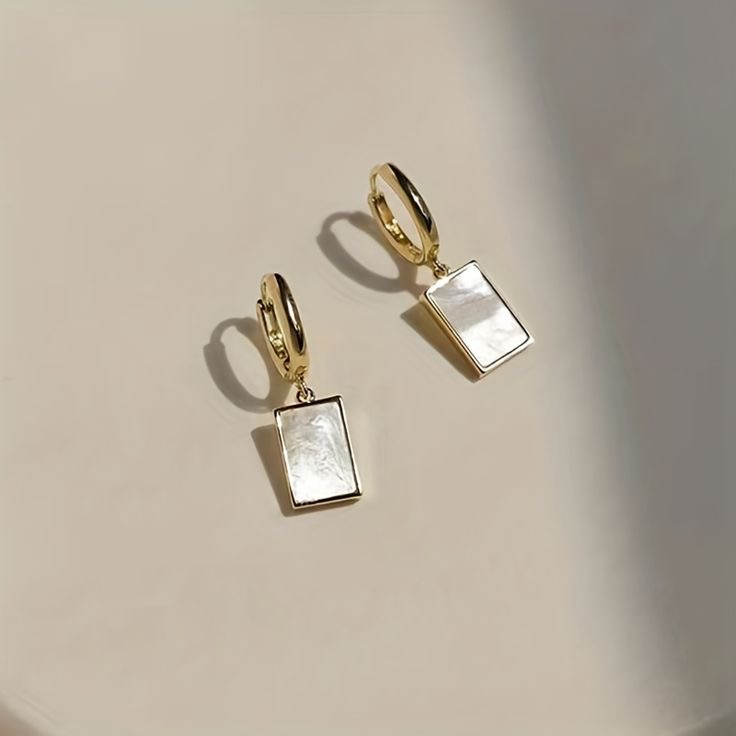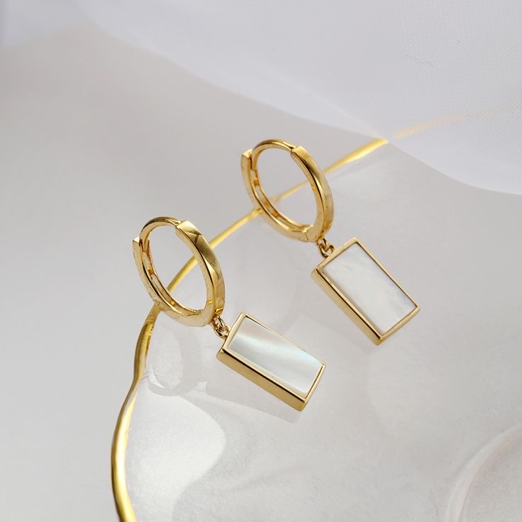 Elevate your jewelry collection with our luxe shell drop huggie earrings, where modern minimalism meets timeless sophistication. These stunning earrings feature high-polish gold huggie hoops paired with rectangular drops that showcase a lustrous mother-of-